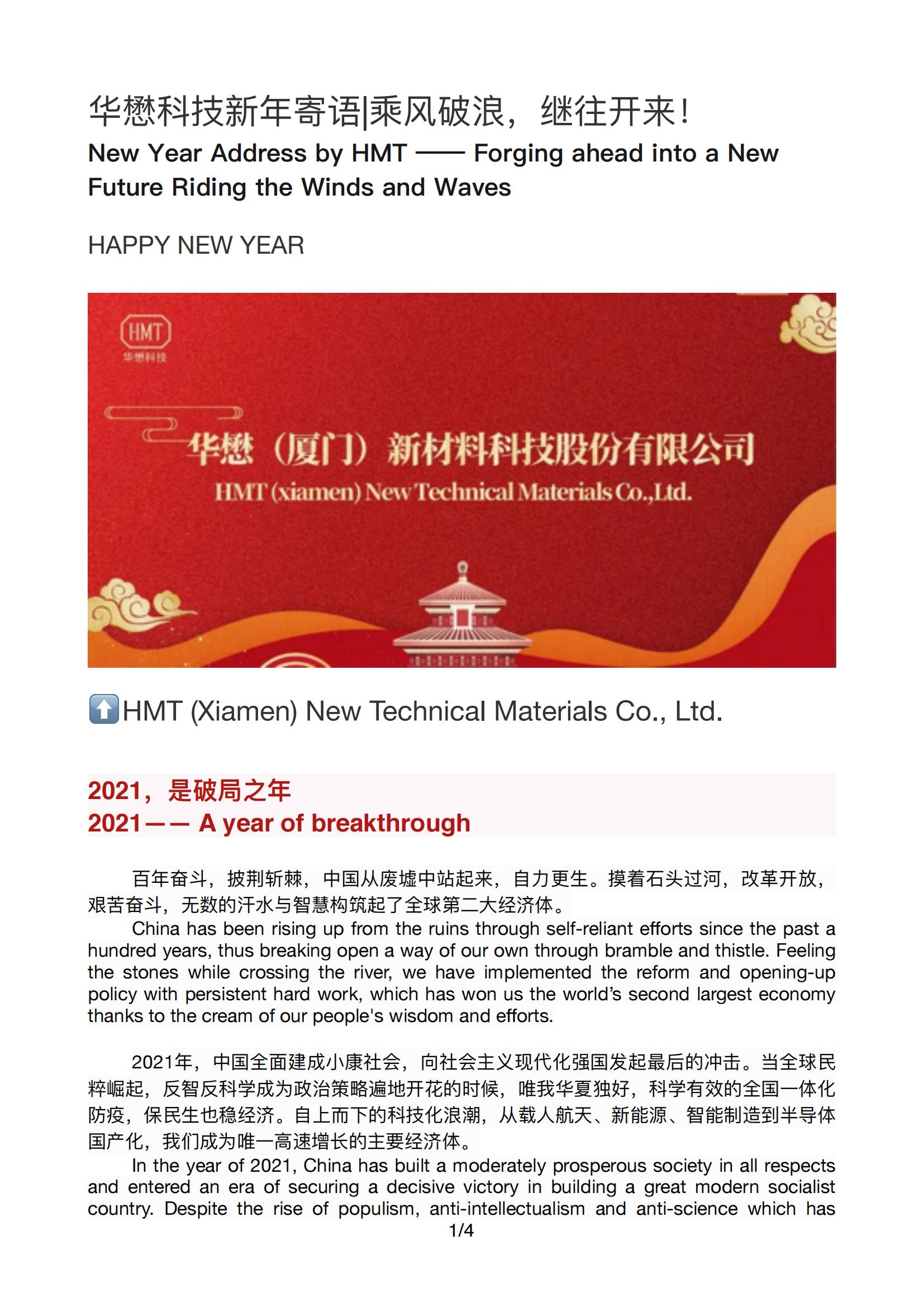 New Year Address by HMT--Forging ahead into a new future riding the winds and waves